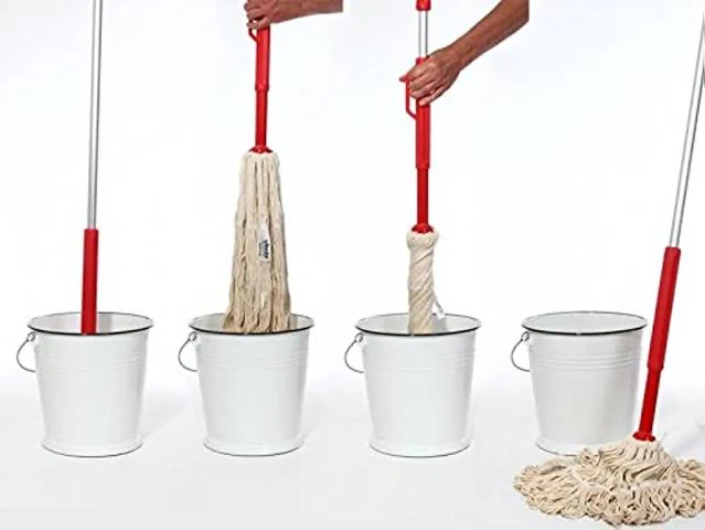 - Efficient cotton mop with hands-free wringing